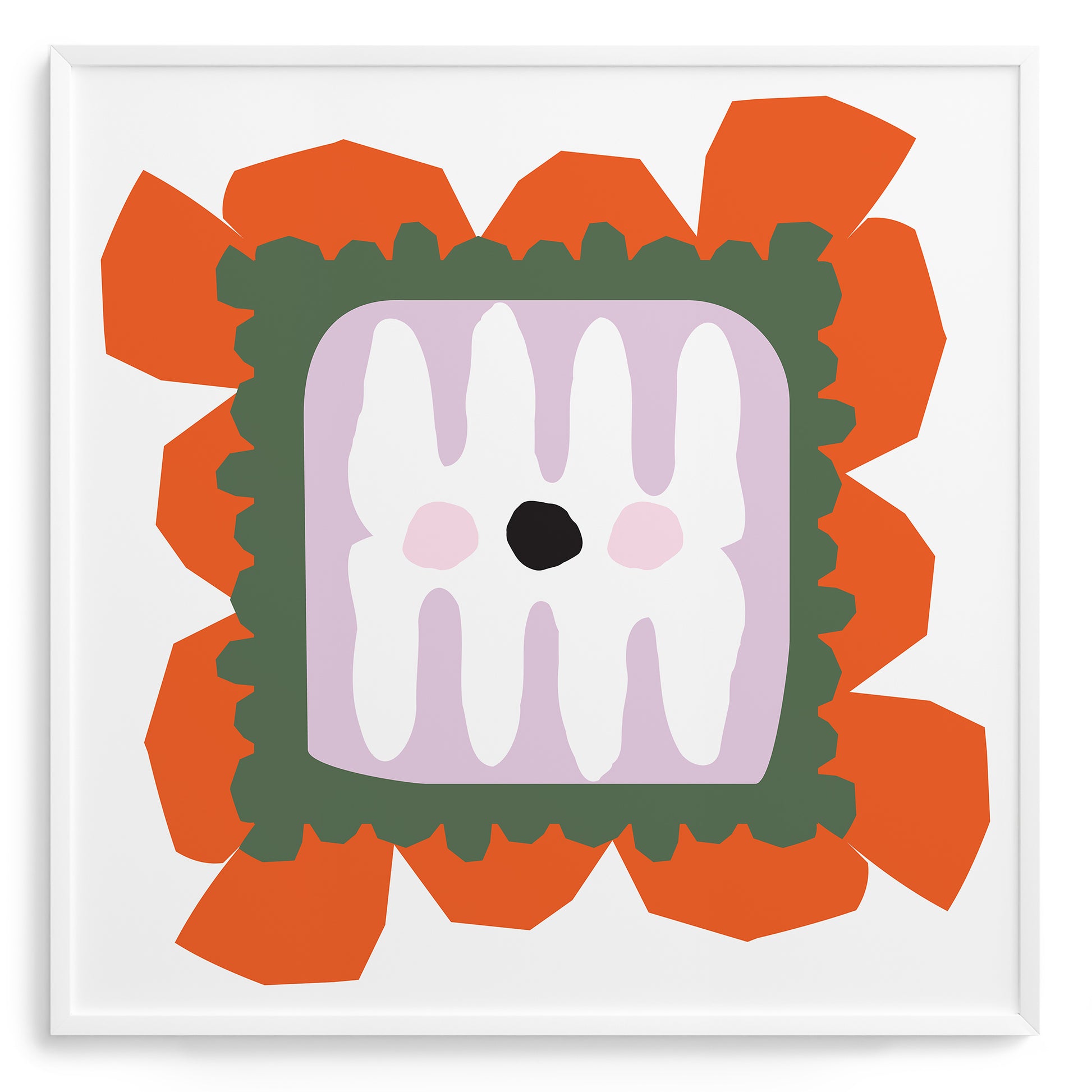 Based on African painted houses, this print celebrates bold color, rhythm, and form through a modern abstract composition. Shapes in terracotta, olive green, lilac, and white radiate warmth and energy, creating a balance between tradition and contemporary design. The artwork reflects themes of beauty, strength, and joy while reimagining heritage through vibrant simplicity.